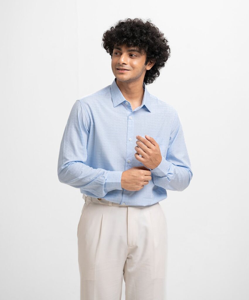 Light Blue Cotton Long Sleeve Formal Shirt