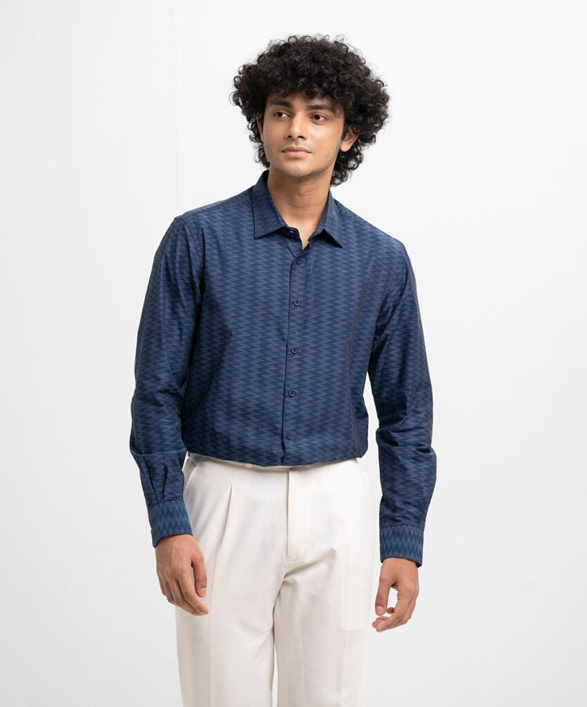 Navy Blue Cotton Business Formal Shirt